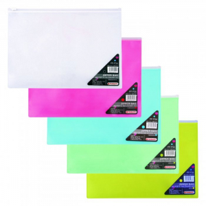 Koperta wykonana z bezbarwnego lub kolorowego polipropylenu. Zamykana na bezbarwny zamek strunowy. Wymiary: 340 x 238 mm