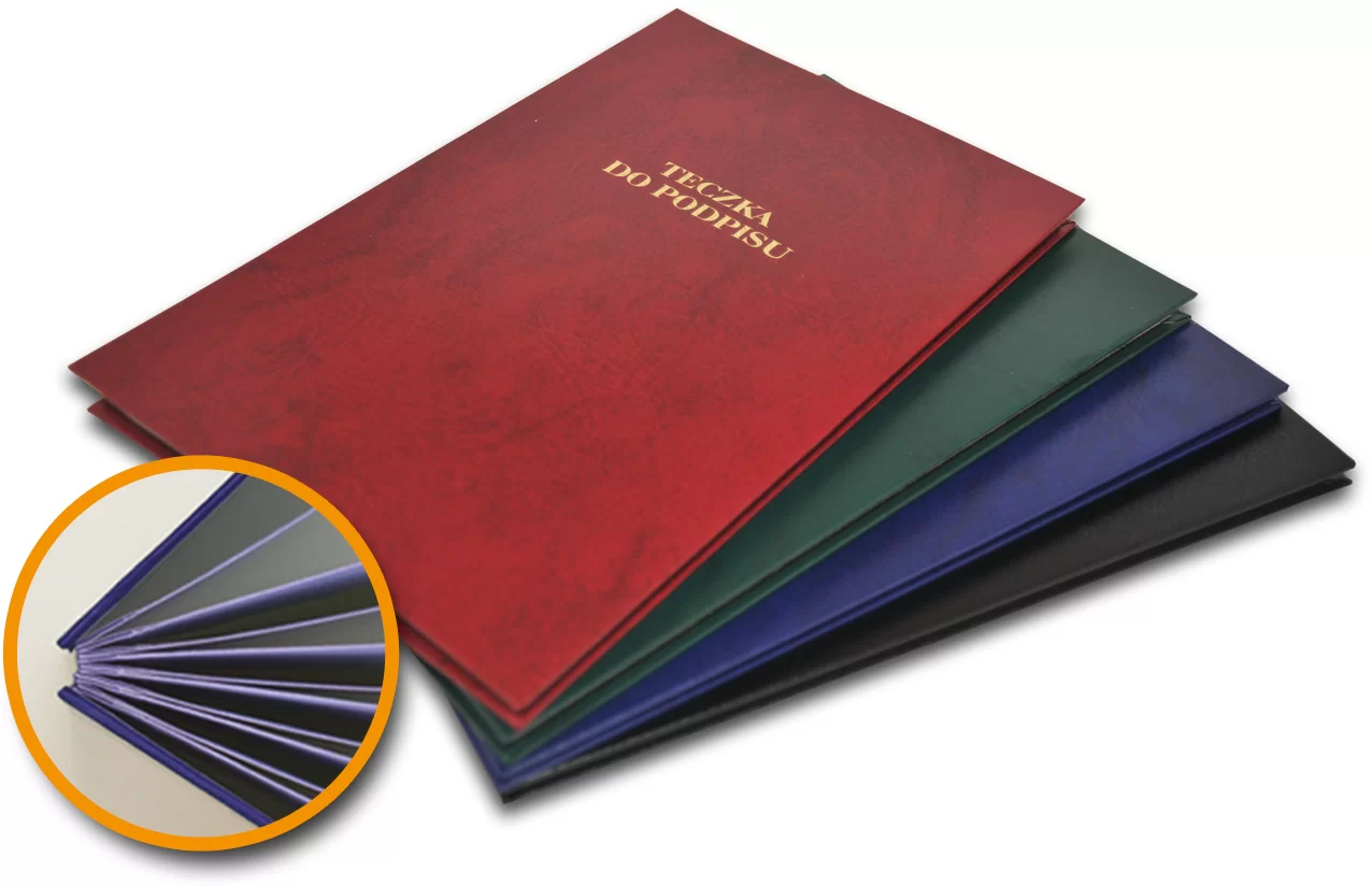 Teczka wykonana z kartonu pokrytego skóropodobnym tworzywem (folia PVC),