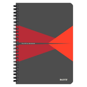 Kołonotatnik Leitz Office. A5. w kratkę. z okładką kartonową 90 kartek czerwony