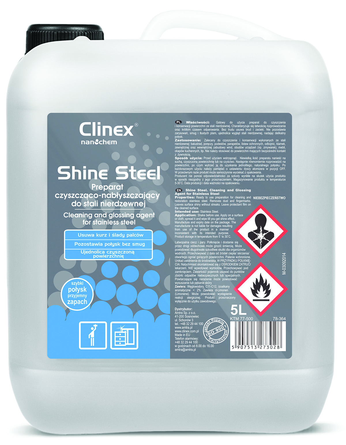 preparat szczególnie polecany jest do czyszczenia zewnętrznej oraz wewnętrznej zabudowy wind, balustrad, parapetów, klamek, gzymsów, podestów, listew ochronnych, urządzeń oraz mebli ze stali nierdzewnej