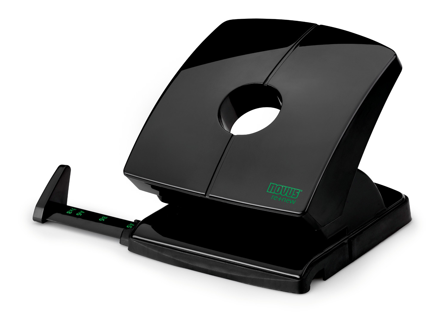 - najwyższej jakości dziurkacz biurowy do użytku profesjonalnego wykonany w 62% z plastiku pochodzącego z recyklingu __- bezpiecznie zatrzaskujący się ogranicznik formatów z dobrze czytelnym wskaźnikiem__- antypoślizgowa podstawa. którą można otworzyć do połowy dla opróżnienia i łatwo zamknąć__- urządzenie w całości wykonane z metalu. w obudowie z błyszczącego plastiku__- 2 dziurki o rozstawie 80mm. średnica dziurki 5.5mm__- jednorazowo dziurkuje do 30 kartek standardowej grubości__- waga: ok. 350g__- 10 lat gwarancji__- kolor czarny