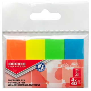 OFFICE PRODUCTS Zakładki indeksujące OFFICE PRODUCTS, papier, 20x50mm, 4x50 kart., zawieszka, mix kolorów neon