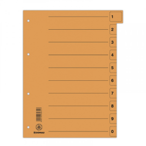 Przekładka DONAU, karton, A4, 235x300mm, 0-9, 1 karta z perforacją, pomarańczowa