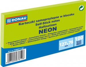 Bloczek samoprzylepny DONAU, 127x76mm, 1x100 kart., neon, zielony