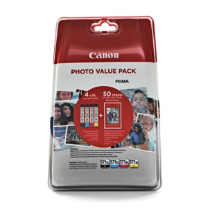 Oryginalna, bardzo wydajna kaseta z atramentem Canon CLI-571XL BK/C/M/Y + papier fotograficzny 50 arkuszy PP-201 Glossy II Photo Paper Plus 4 × 6/ firmy Canon.
