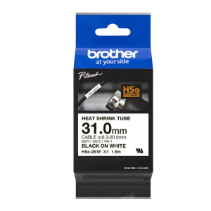 Oryginalna rurka termokurczliwa Brother HSe-261E o szerokości 31 mm. Została zaprojektowana specjalnie do trwałego znakowania i identyfikacji kabli oraz przewodów. Rurka termokurczliwa Brother HSe-261E charakteryzuje się współczynnikiem kurczenia 3:1 i jest rekomendowana do kabli o średnicy od 6,3 mm do 20 mm.