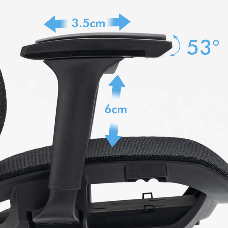 podłokietniki 3D z możliwością regulacji wysokości, przesunięcia przód/tył i obrotu prawo/lewo