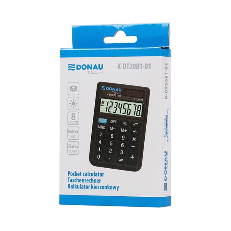 kalkulator kieszonkowy z 8-cyfrowym wyświetlaczem z zasilaniem bateryjno-solarnym