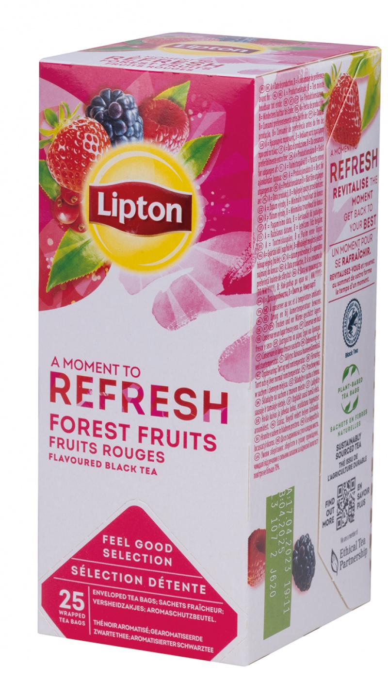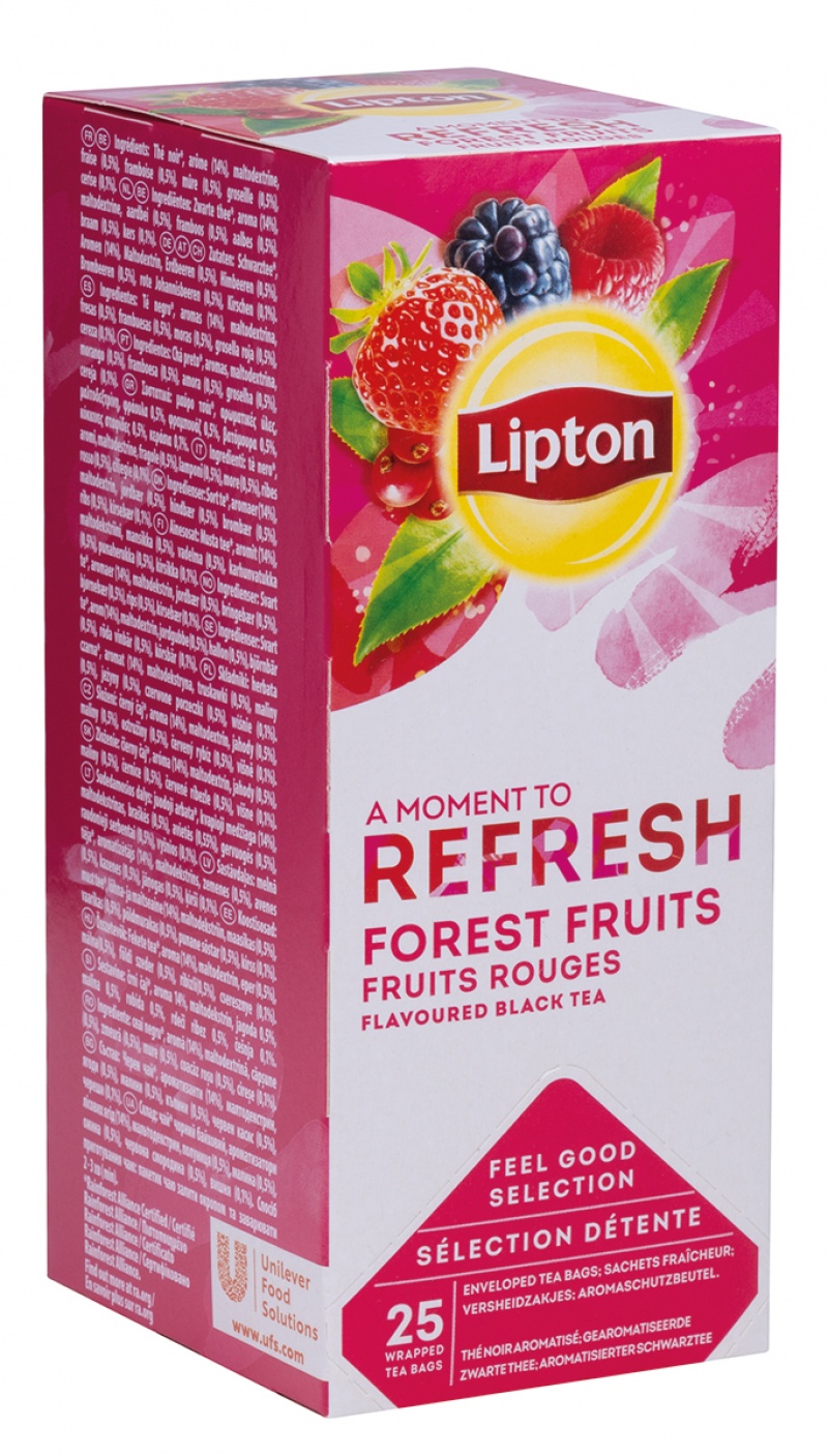 aromatyzowana herbata Forest Fruits producenta Lipton to czarna herbata z dodatkiem aromatu owoców leśnych