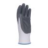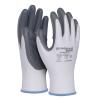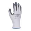 rękawice wykonane z dobrej jakości dzianiny poliestrowej w kolorze białym, powleczone w części chwytnej szarym nitrylem