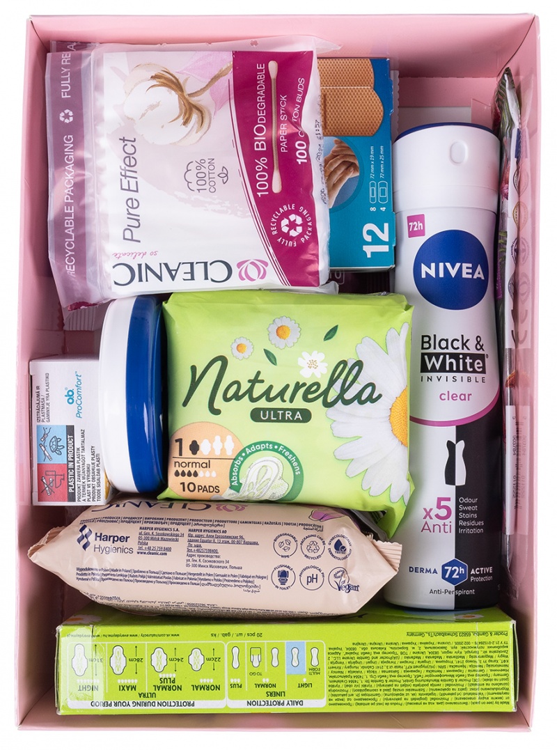 zawiera szeroką gamę produktów potrzebnych do zachowania higieny i zapewnienia komfortu współczesnej kobiecie