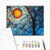 zestaw farb akrylowych, ponumerowanych zgodnie z numerami kolorów, na które podzielone jest płótno