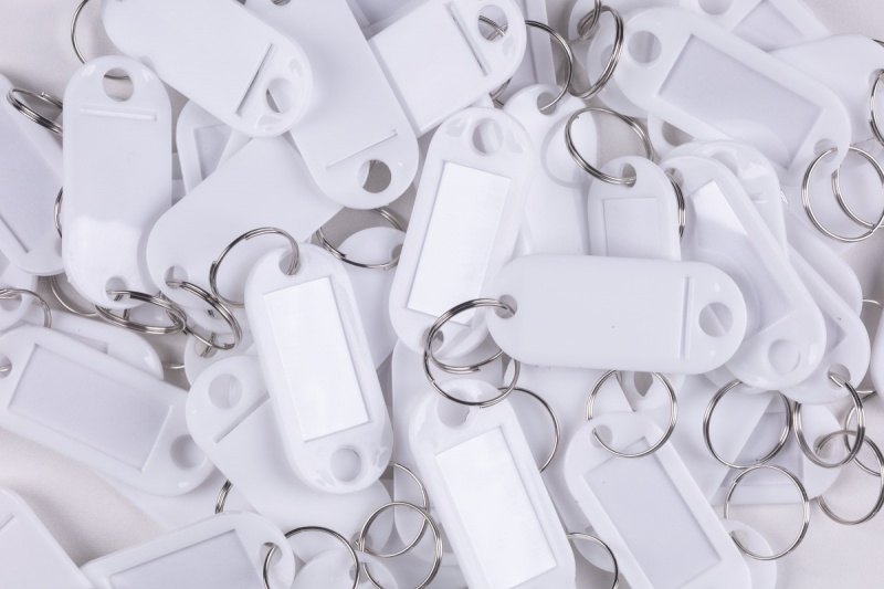wyposażone w etykietkę opisową oraz kółeczko o średnicy 15mm łączące zawieszkę z kluczem
