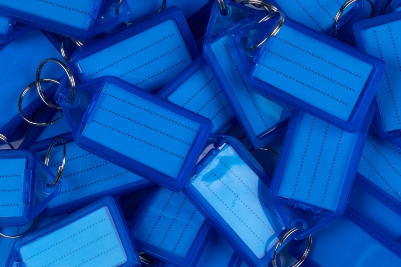 wyposażone w etykietkę opisową oraz kółeczko o średnicy 15mm łączące zawieszkę z kluczem