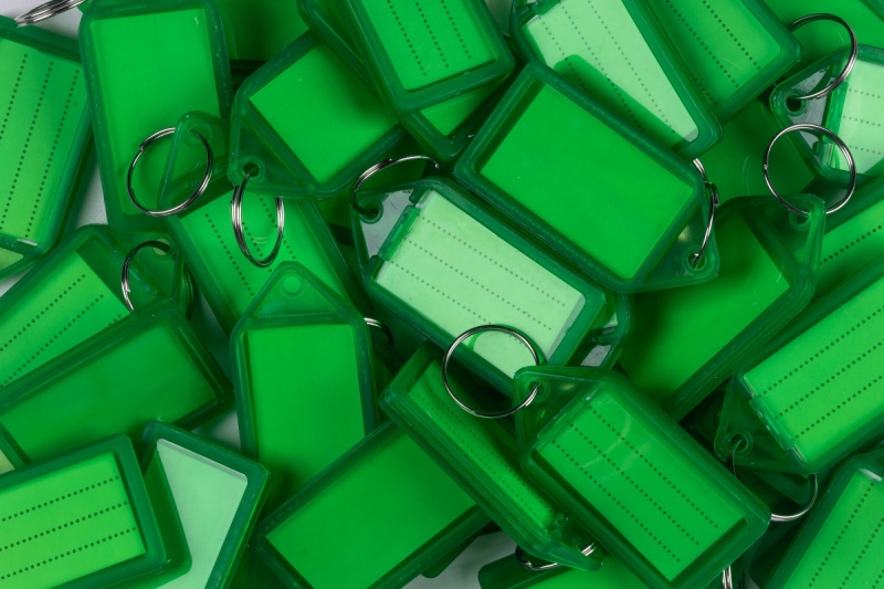 wyposażone w etykietkę opisową oraz kółeczko o średnicy 15mm łączące zawieszkę z kluczem