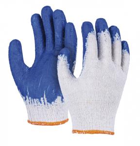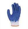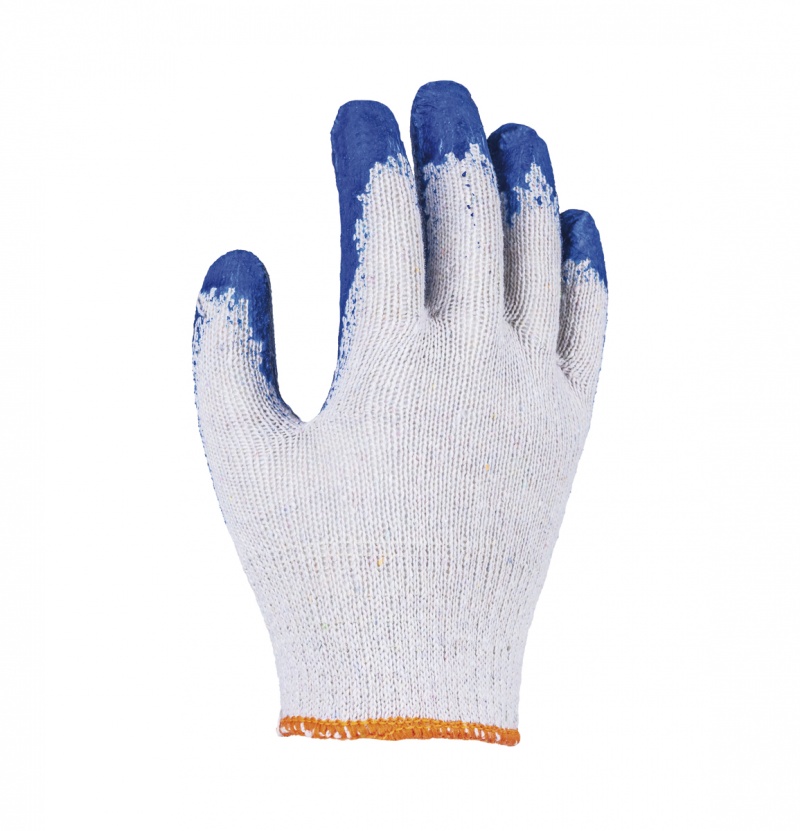 rękawice wykonane z dzianiny bawełnianej w kolorze naturalnym, powleczone w części chwytnej lateksem w kolorze niebieskim