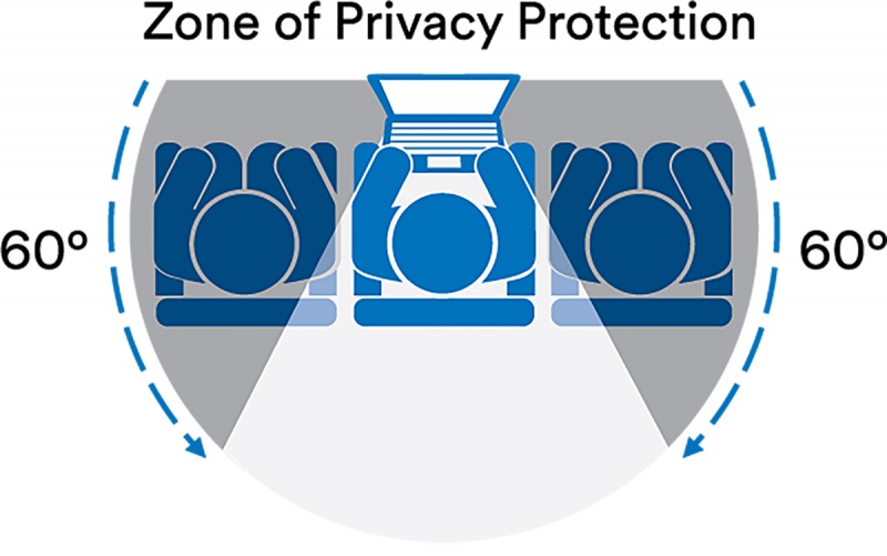 zaawansowany filtr prywatyzujący 3M™ Bright Screen zapewniający skuteczną ochronę poprzez zaciemnienie ekranu i uniemożliwienie podglądania jego zawartości z boku (poza 60-stopniowym kątem widzenia)