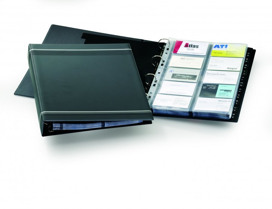 Album na wizytówki VISIFIX A4 na 400 wizytówek Durable_- okładka matowa w kolorze granatowym lub grafitowym_- mechanizm ringowy_- przekładki A-Z_- możliwość umieszczenia dodatkowych wkładów (maksymalnie do 600 wizytówek)_- jednostka sprzedaży 1 sztuka