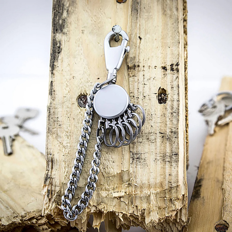 łańcuszek z karabińczykiem i 6 wymiennymi kółkami (ø 13 mm) – błyskawiczna wymiana kluczy i pełna organizacja