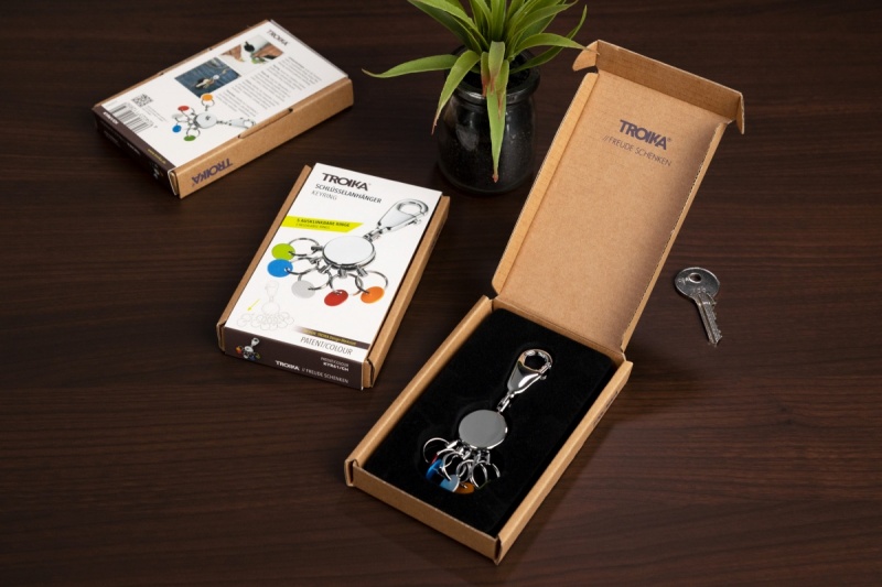 funkcja opatentowanego organizera do kluczy: łatwe zaczepianie i wymiana kółek dla wygodnego korzystania z poszczególnych kluczy, z możliwością rozbudowy o dodatkowe kółka