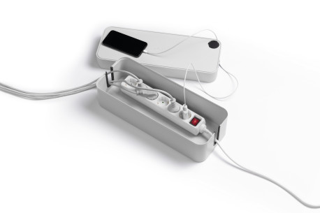 • Niebanalny ogranizer do przechowywaia kabli oraz listwy zasilającej 5 gniazd