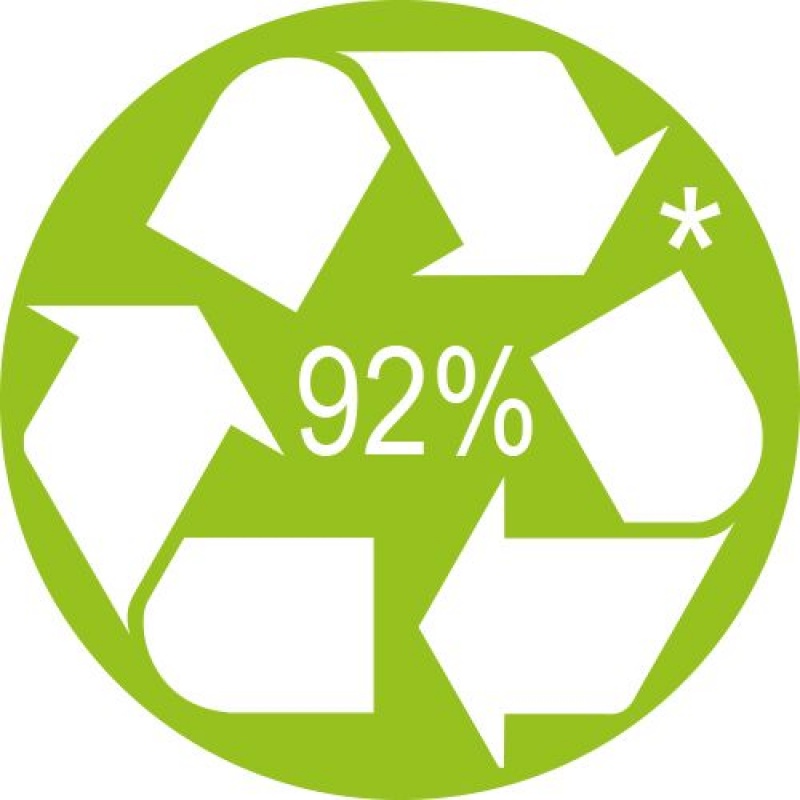 wykonany w 92% z plastiku pochodzącego z recyklingu (pozwala to zaoszczędzić ponad 84% emisji CO₂ w porównaniu do konwencjonalnego plastiku)