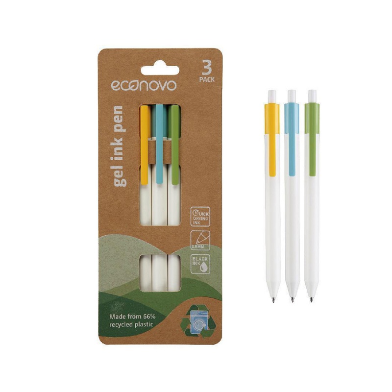 Długopis automatyczny żelowy ECONOVO, szybkoschnący tusz, 0,5mm, 3 szt., mix kolorów
