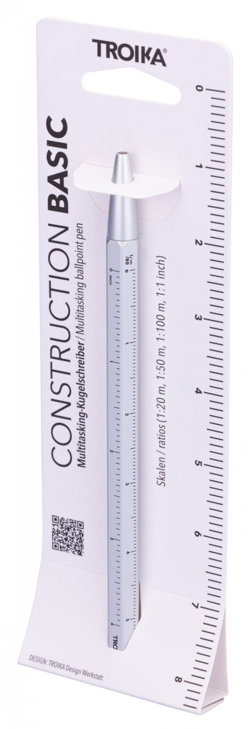 typowy design dla długopisów Construction – linijka w centymetrach i calach oraz skale 1:20 i 1:50, idealne dla architektów, inżynierów i projektantów