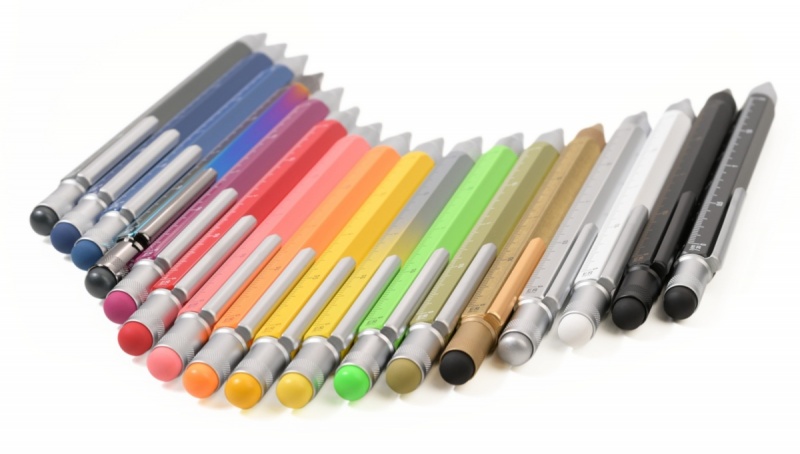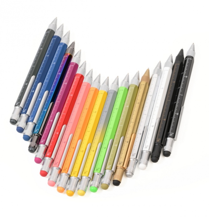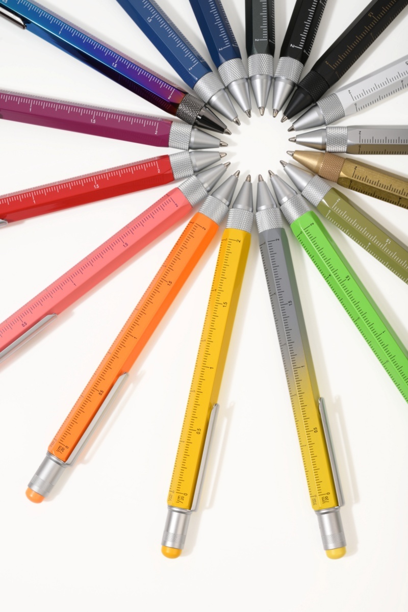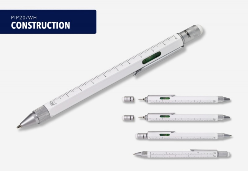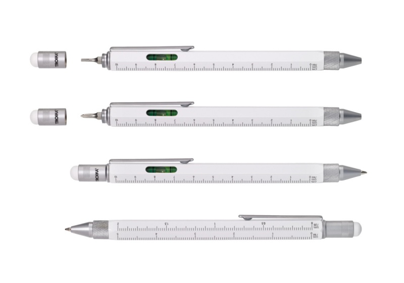 Ten innowacyjny długopis mieści wszystko, czego w danym momencie potrzebujesz: linijka 10 cm i 4 cale, skalę 1:20 i 1:50, poziomicę, śrubokręt płaski i krzyżakowy oraz rysik do ekranów dotykowych.