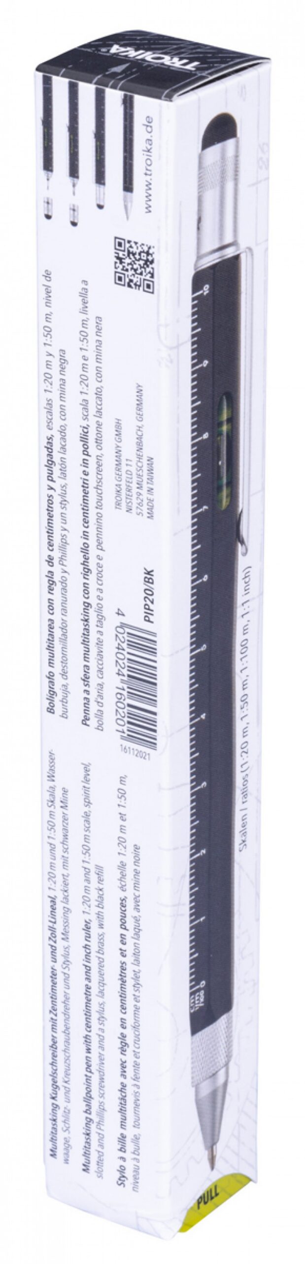 Ten innowacyjny długopis mieści wszystko, czego w danym momencie potrzebujesz: linijka 10 cm i 4 cale, skalę 1:20 i 1:50, poziomicę, śrubokręt płaski i krzyżakowy oraz rysik do ekranów dotykowych.