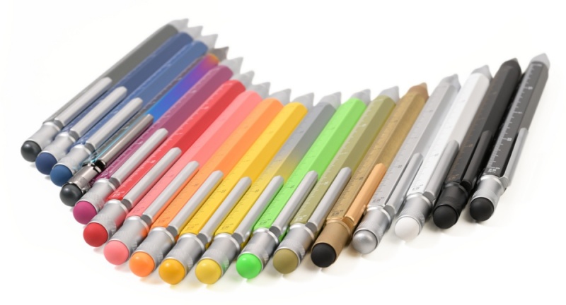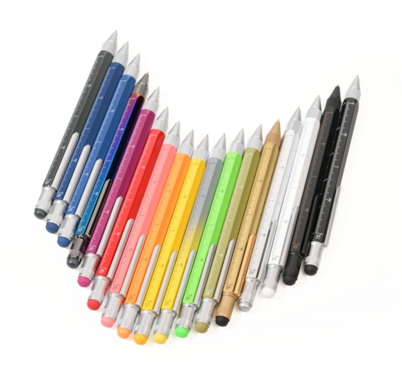 Ten innowacyjny długopis mieści wszystko, czego w danym momencie potrzebujesz: linijka 10 cm i 4 cale, skalę 1:20 i 1:50, poziomicę, śrubokręt płaski i krzyżakowy oraz rysik do ekranów dotykowych.