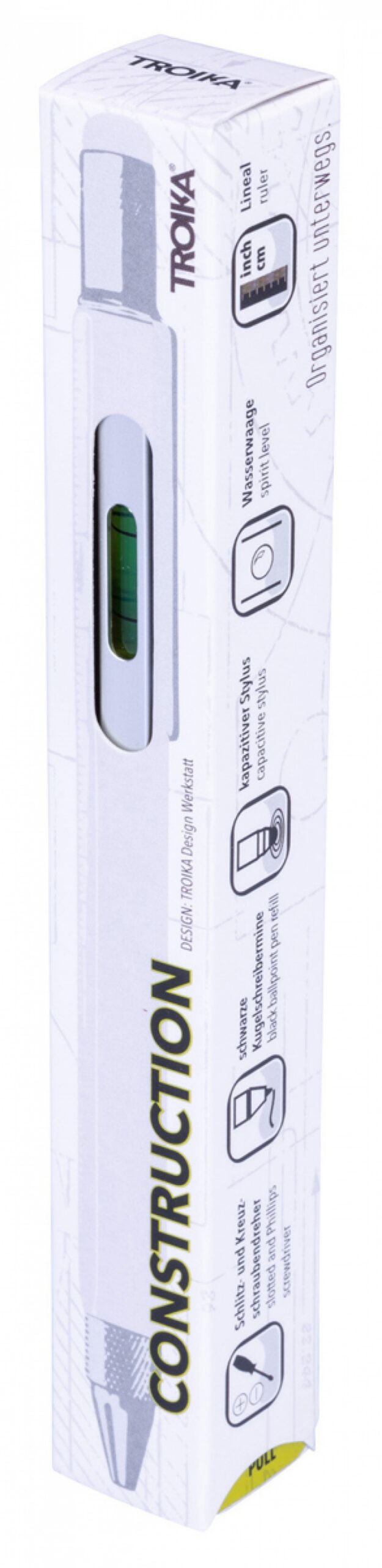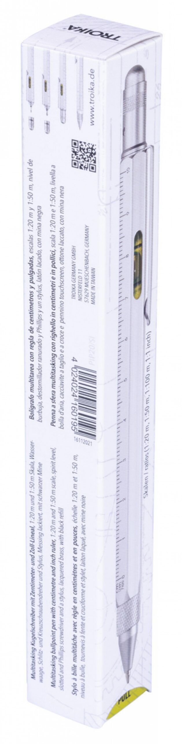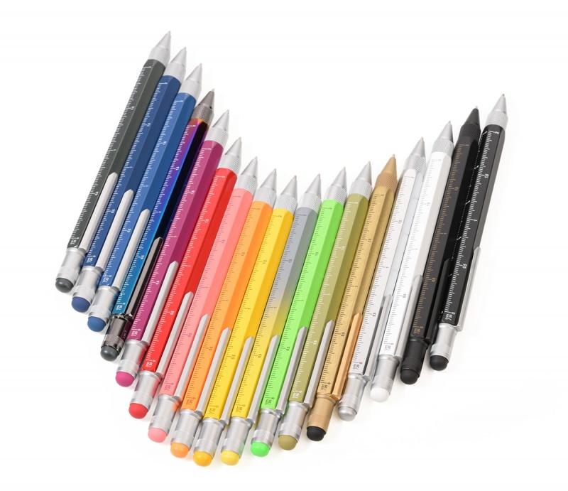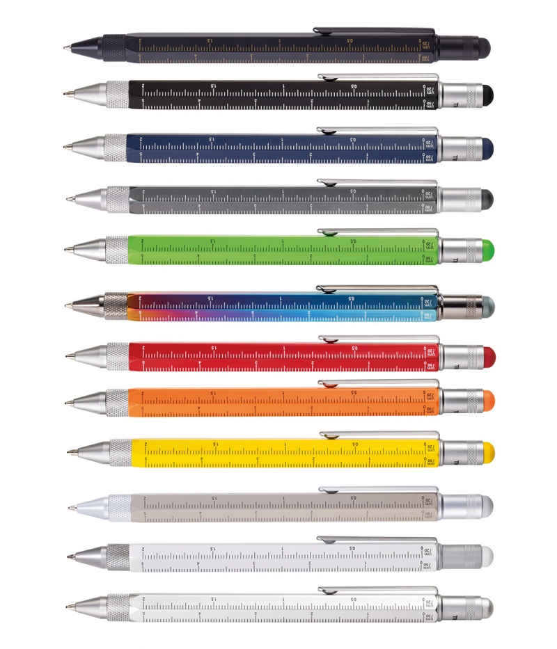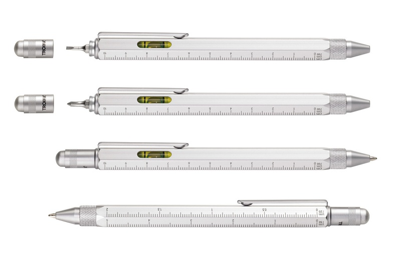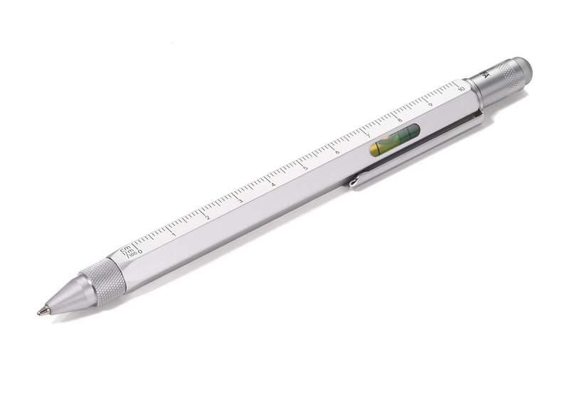 Ten innowacyjny długopis mieści wszystko, czego w danym momencie potrzebujesz: linijka 10 cm i 4 cale, skalę 1:20 i 1:50, poziomicę, śrubokręt płaski i krzyżakowy oraz rysik do ekranów dotykowych.