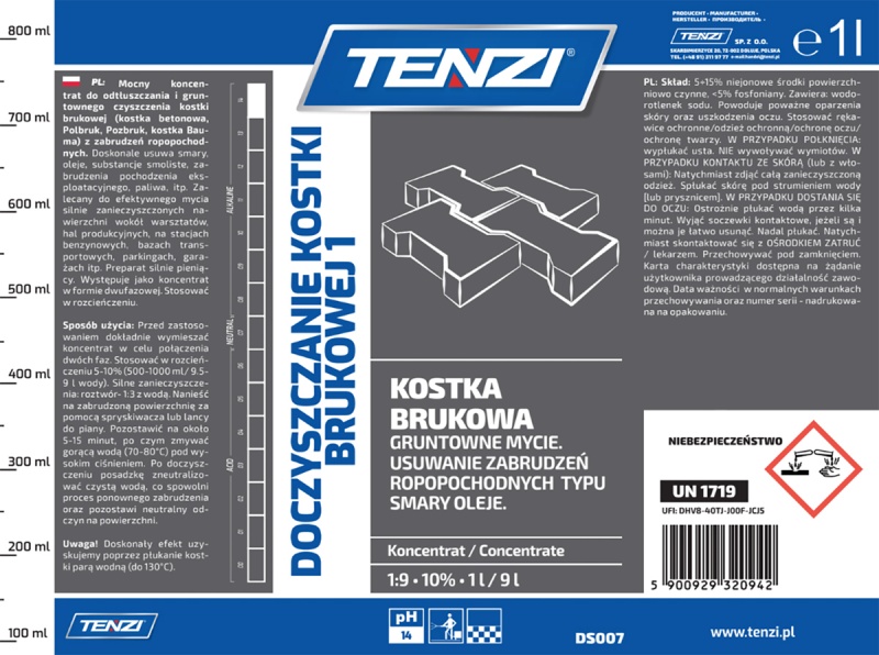 Dwufazowy koncentrat do czyszczenia kostki brukowej TENZI, 1l
