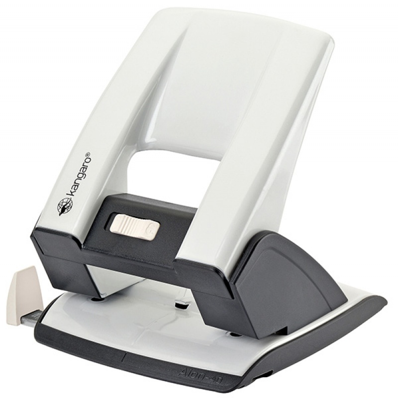 Dziurkacz KANGARO Aion-40, dziurkuje do 40 kartek, metalowy, metaliczny biały