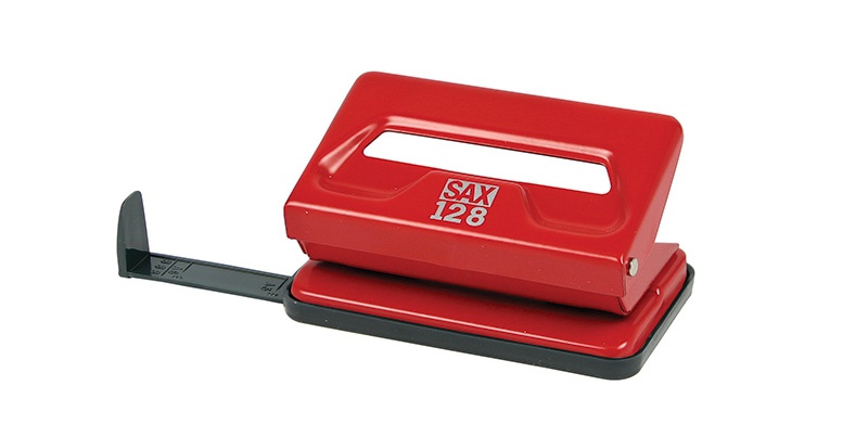 Dziurkacz SAX128S, dziurkuje do 12 kartek, czerwony