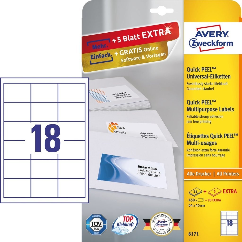 Etykiety Avery Zweckform uniwersalne A4 25 arkuszy + 5 arkuszy Extra 64 x 45 mm białe