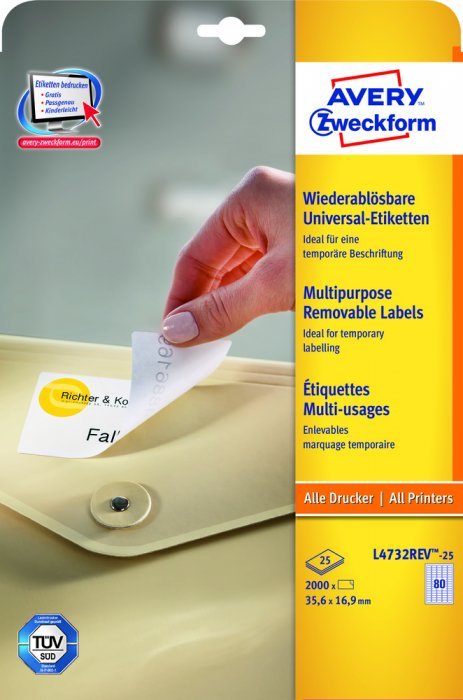 Etykiety Avery Zweckform usuwalne 35.6*16.9 (25)