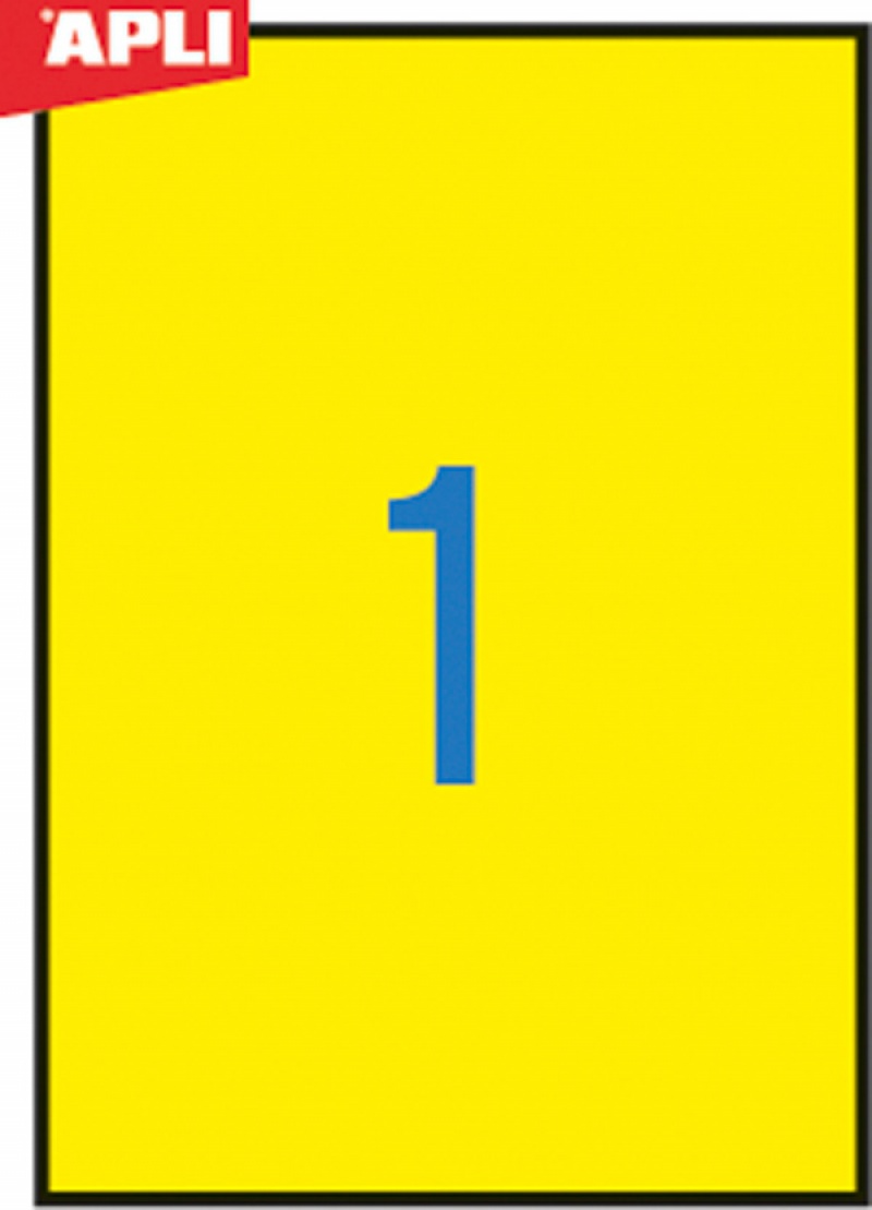 Etykiety kolorowe APLI, 210x297mm, prostokątne, żółte, 20 ark.