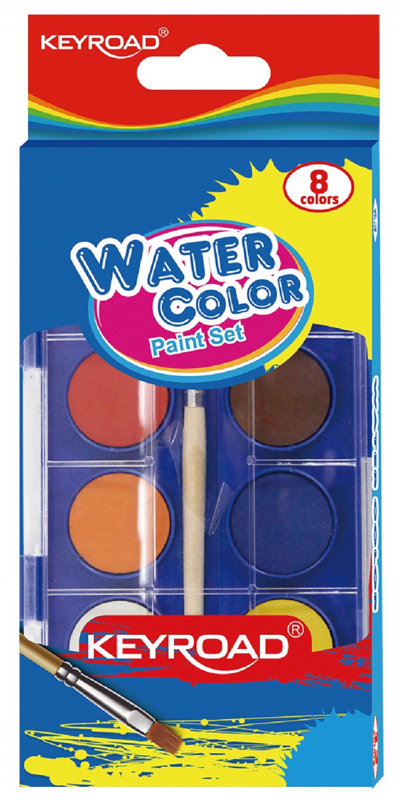 Farby akwarelowe KEYROAD, zawieszka, z pędzelkiem, 8 kolorów