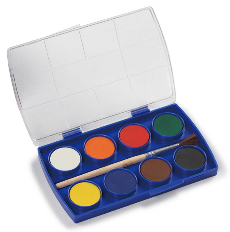szkolne farby akwarelowe, w plastikowym pudełku