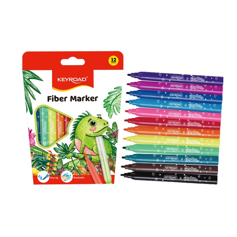 Flamastry KEYROAD Fiber Marker, 12szt., na zawieszce, mix kolorów