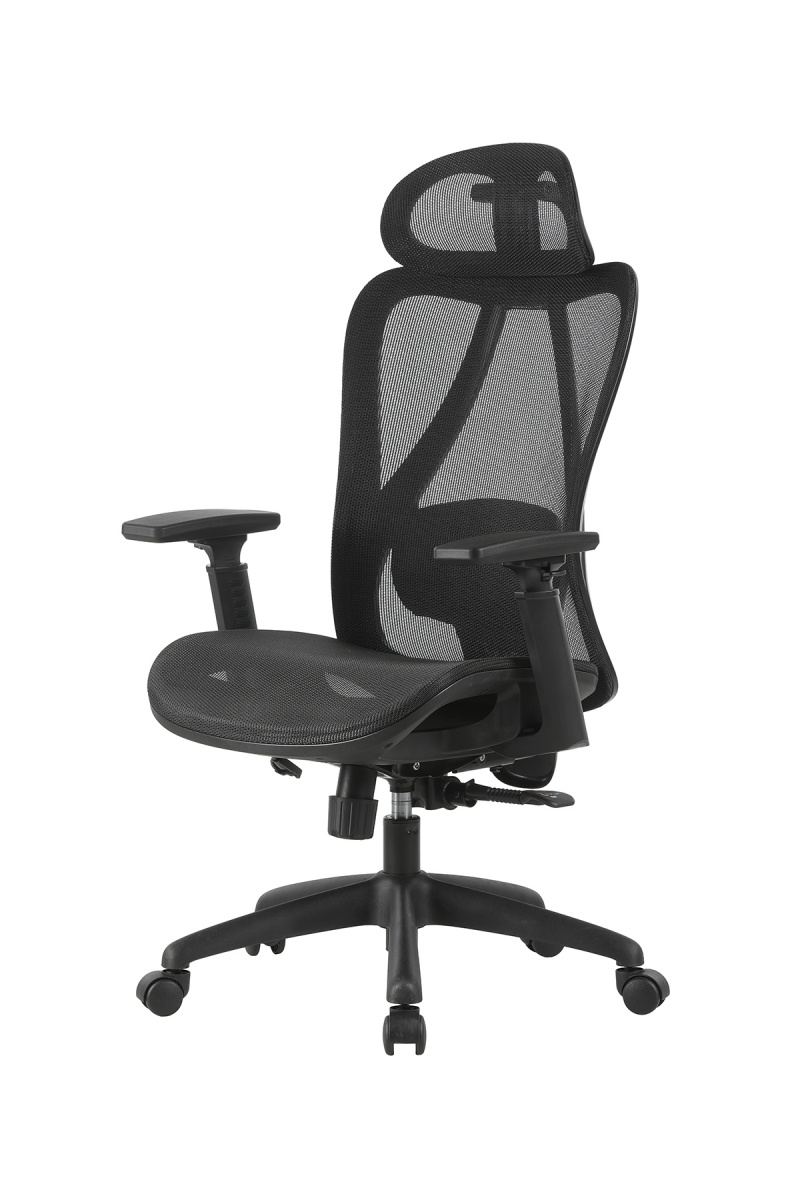 ergonomiczny, obrotowy fotel biurowy z wysokiej jakości siatką na siedzisku, oparciu i zagłówku