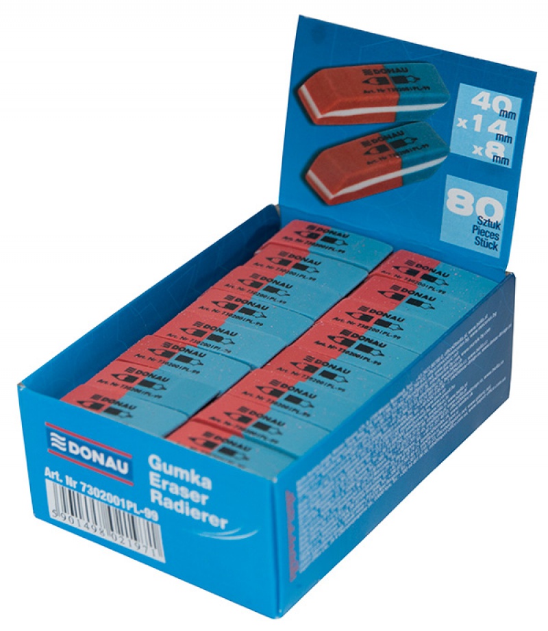 Gumka wielofunkcyjna DONAU, 40x14x8mm, niebiesko-czerwona