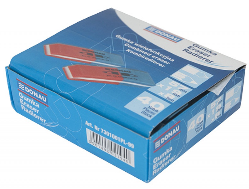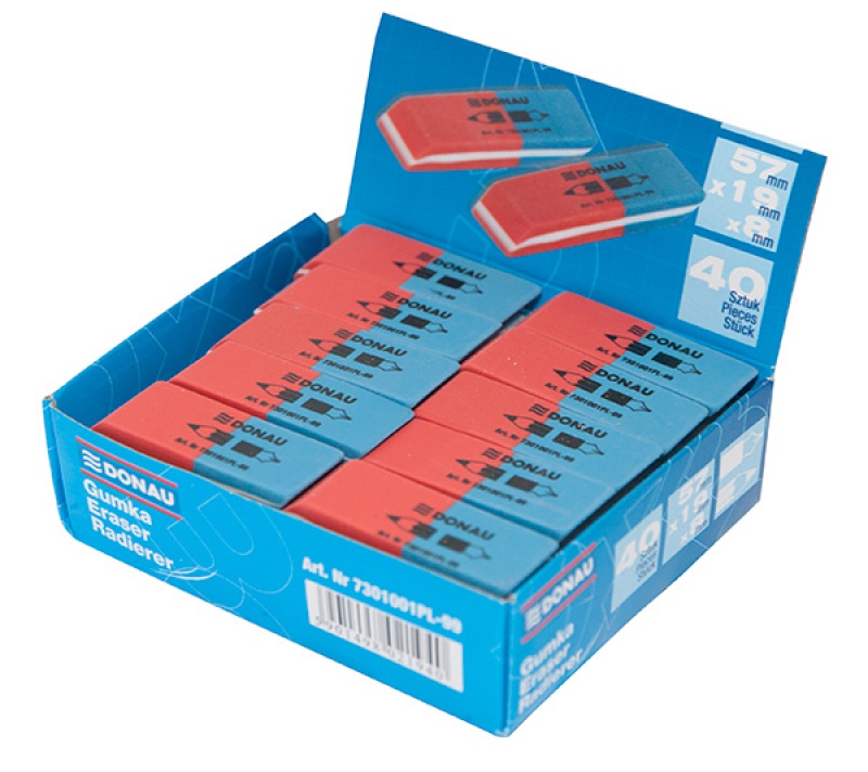 Gumka wielofunkcyjna DONAU, 57x19x8mm, niebiesko-czerwona