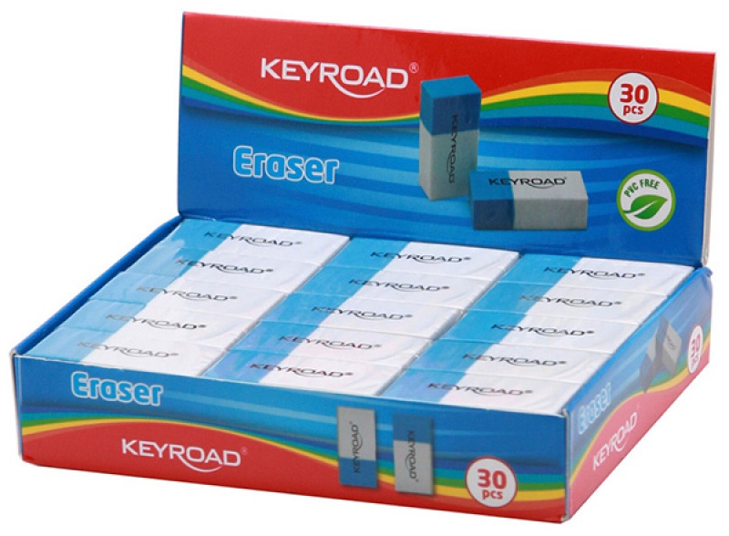 Gumka wielofunkcyjna KEYROAD Duo Eraser, pakowane na displayu, niebiesko-biała