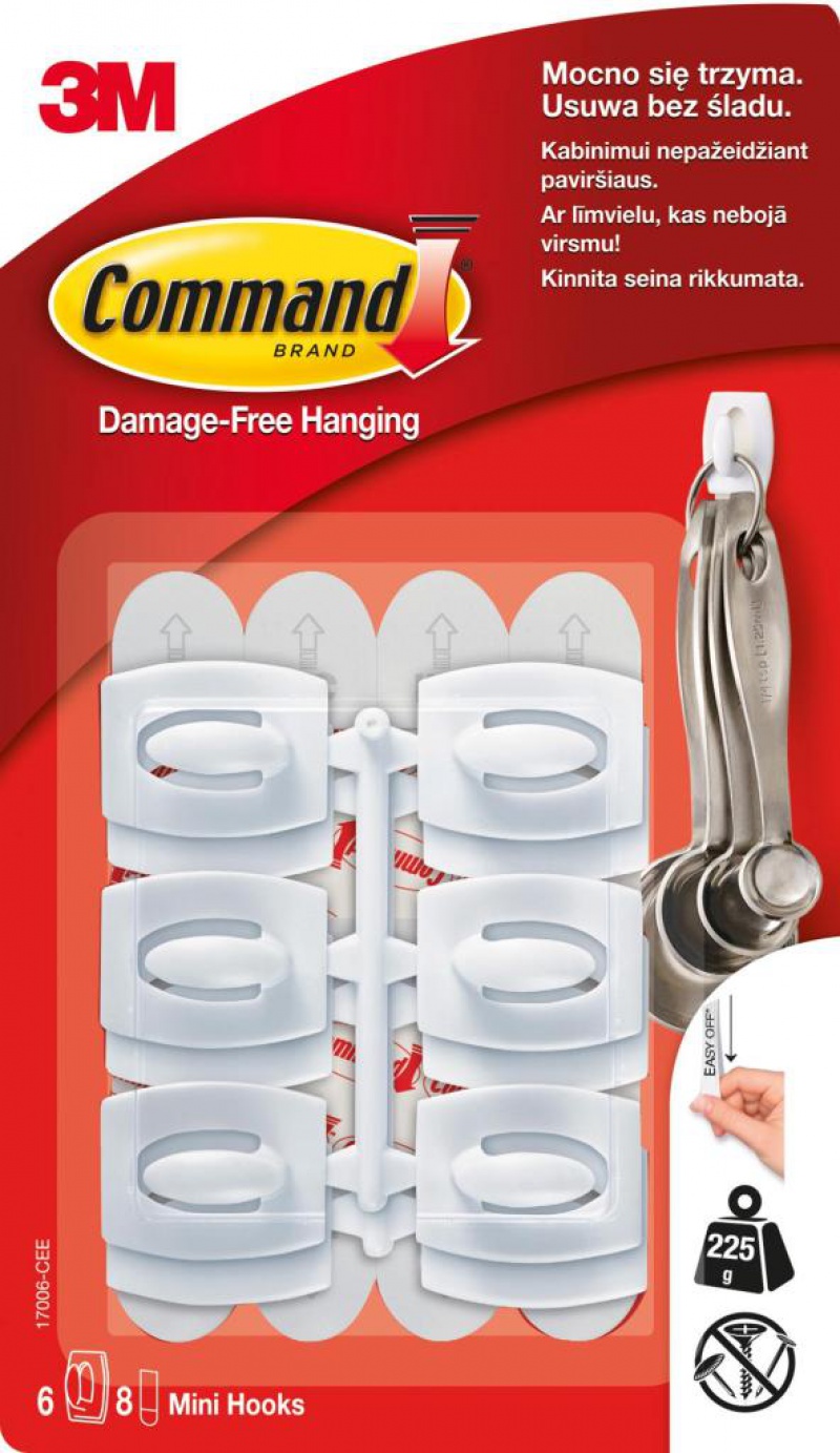 Haki wielokrotnego użytku COMMAND™ (17006 CLR), małe, 6szt., białe