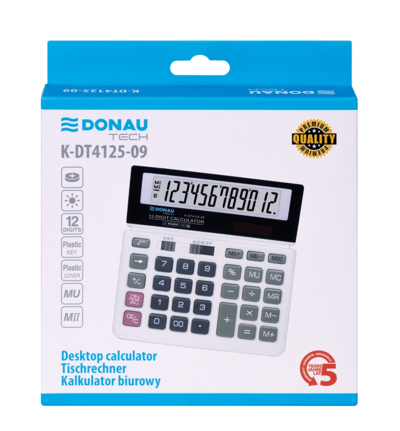 Kalkulator biurowy DONAU TECH, CI-SDC368, 12-cyfr. wyświetlacz, wym. 155x152x28 mm, biały