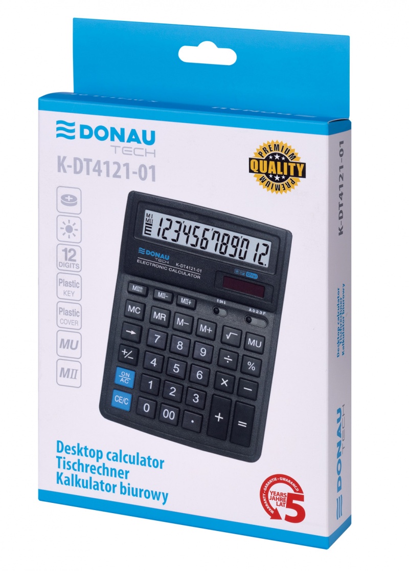 Kalkulator biurowy DONAU TECH, CI-SDC444S, 12-cyfr. wyświetlacz, wym. 190x143x40 mm, czarny