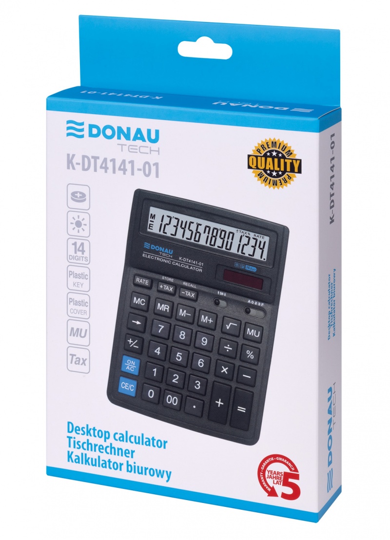 kalkulator biurowy z 14-cyfrowym wyświetlaczem z zasilaniem bateryjno-solarnym