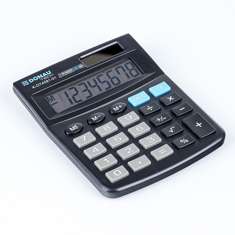 Kalkulator biurowy DONAU TECH OFFICE, CI-CMB801BK, 8-cyfr. wyświetlacz, wym. 137x101x30mm, czarny